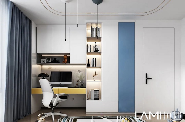 拉迷一直致力于兒童房空間定制的設(shè)計(jì)研發(fā),兒童房與其它空間有所不同的是,它對(duì)色彩、燈光、布局和板材等諸多細(xì)節(jié)有挑剔的要求,而且從小學(xué)開(kāi)始,小朋友的寫(xiě)字桌永遠(yuǎn)堆滿了東西——儲(chǔ)物和學(xué)習(xí)空間混在一起,小朋友還經(jīng)常理直氣壯弄不明白——既然明天還要用,今天為什么還要收起來(lái)?