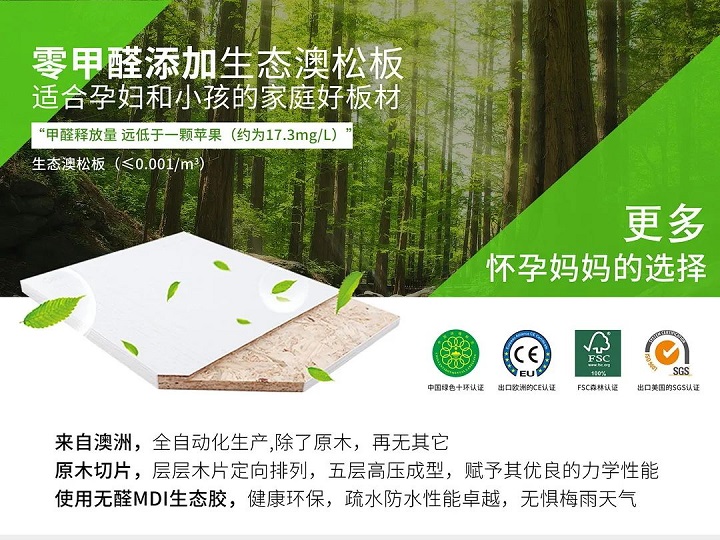 澳松板環(huán)保等級非常高,是唯一一個通過了澳大利亞、新西蘭和日本三國聯(lián)合認證的板材。它是將新鮮的澳洲松木打成纖維,七天內(nèi)完成所有工藝制成成板,否則的話木質(zhì)纖維會產(chǎn)生藍變反應(yīng),整個變藍。所以說他的成品制作周期非常的短,要求同時也很高,最新鮮的木材保證了他的環(huán)保等級更健康、更安全,大人孩子安心入眠。