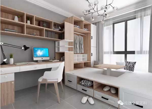 在空間有限的房間里做個(gè)榻榻米,一體化設(shè)計(jì),同時(shí)兼?zhèn)鋵W(xué)習(xí)、睡覺(jué)功能,讓書(shū)房比別人家更靜謐動(dòng)人,滿(mǎn)足求知欲的同時(shí),享受這安靜而又美好的氛圍。