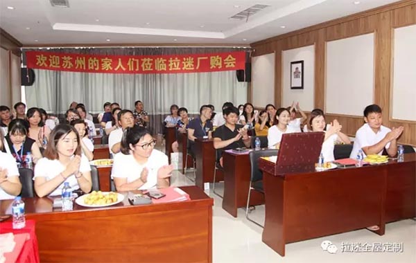 參觀完展廳,大家回到拉迷商學(xué)院大講堂,因?yàn)槌藙疟墓S價,現(xiàn)場還有總裁到場現(xiàn)場神秘大放價,一降到底!