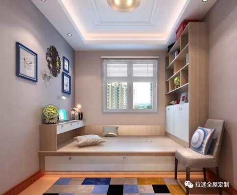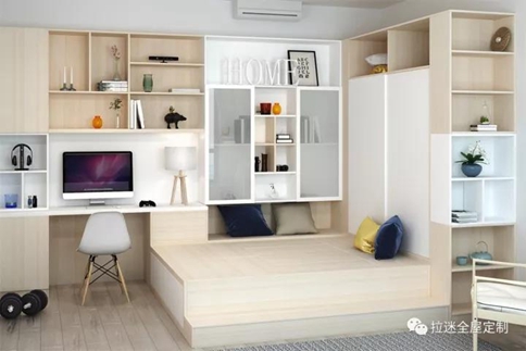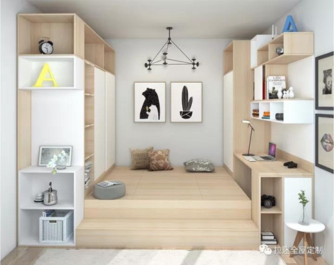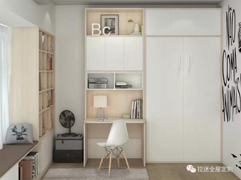 緊挨榻榻米的衣柜、床頭衍生出的電腦桌,都是對(duì)空間的最大化利用。