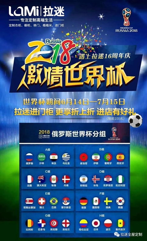 拉迷作為這場(chǎng)全球盛典的冠名商......的忠實(shí)觀眾,在世界杯期間,我們用“進(jìn)門”柜,為每一支球隊(duì)加油!