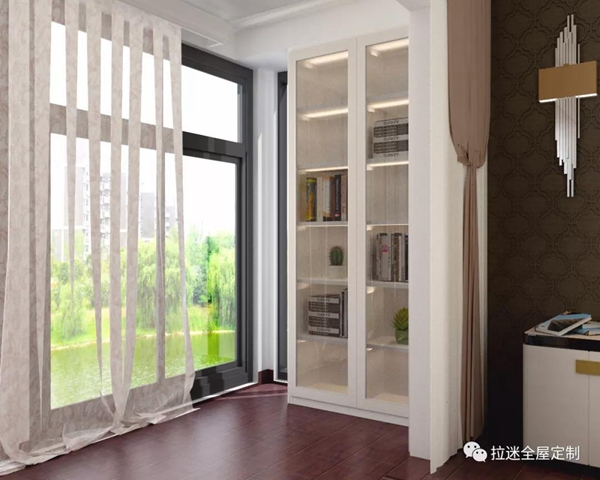 所以,陽臺(tái)書柜的裝修時(shí),要保證陽臺(tái)的密封性,可以在陽臺(tái)上安置布簾,以避免陽光長期直接照射書柜。