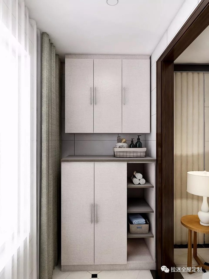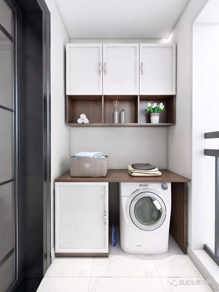 大面積的收納空間把洗衣機及一切雜亂都藏于柜內(nèi);