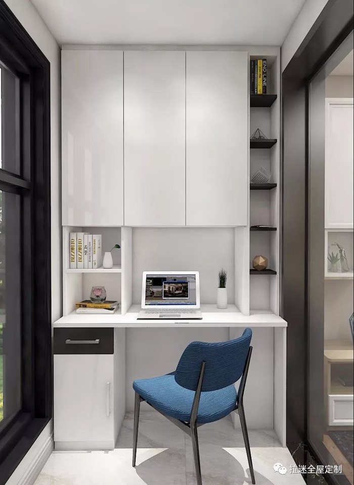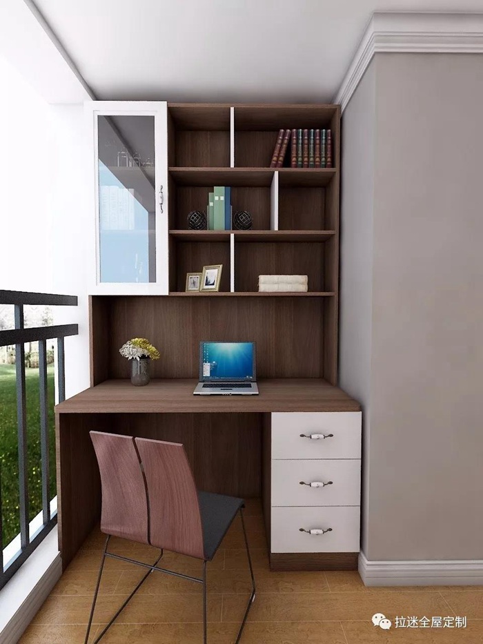 是不是有時感覺房間不夠用,差一個書房?那就來一個書柜,把陽臺打造成書房吧~