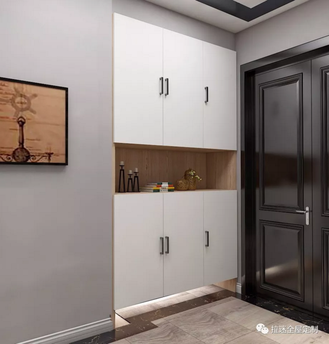 中間部分采用了鏤空設(shè)計(jì),用綠植、香薰、相框、嵌入式燈帶等凸顯裝飾性能,是非常實(shí)用的選擇,讓每天進(jìn)出家門的你都有一份好心情。
