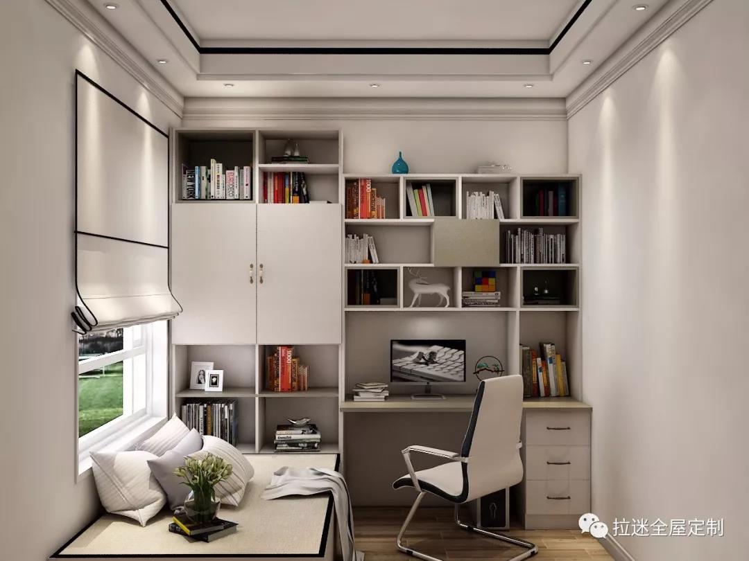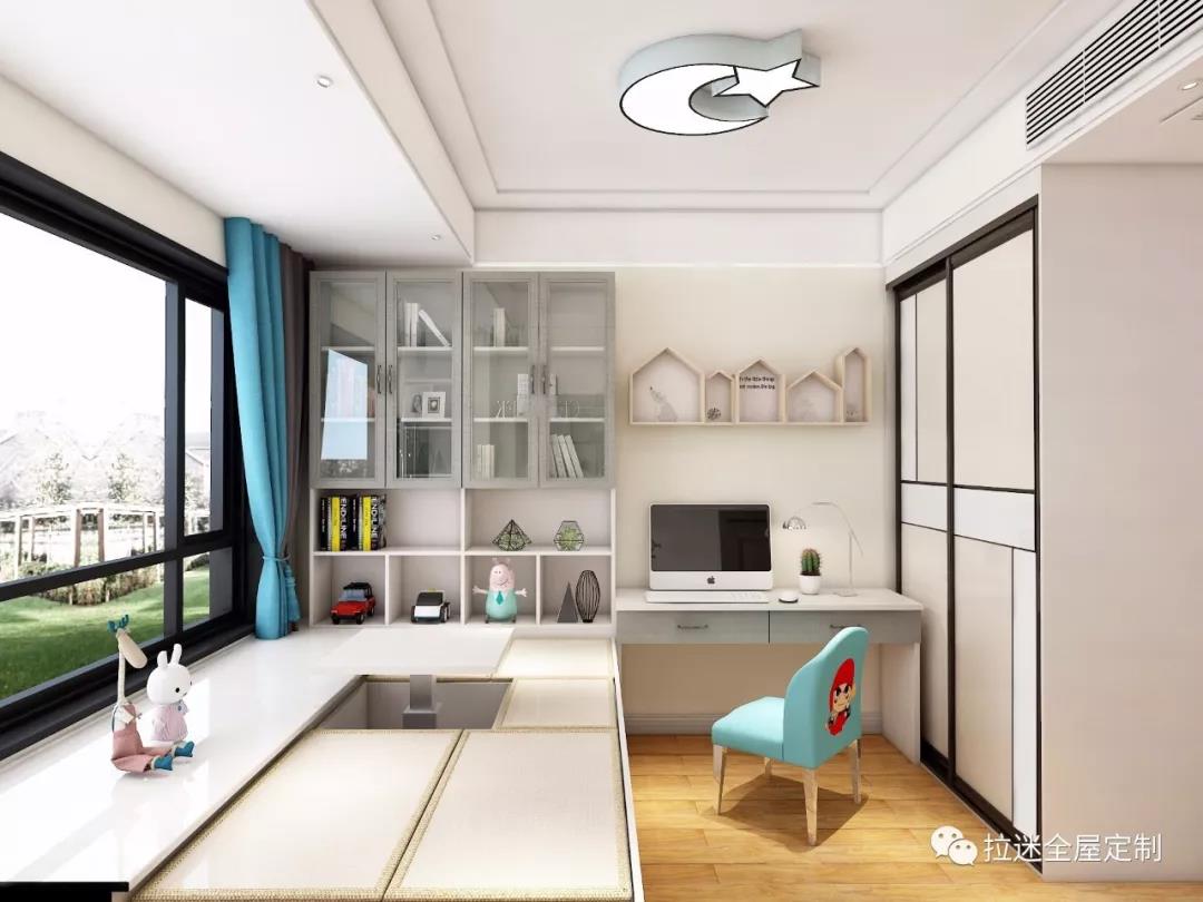 如果因戶型面積受限,無法擁有一間獨(dú)立書房的話,可以把榻榻米空間打造成一個(gè)小型書房,更能展現(xiàn)一分恬靜的感覺。