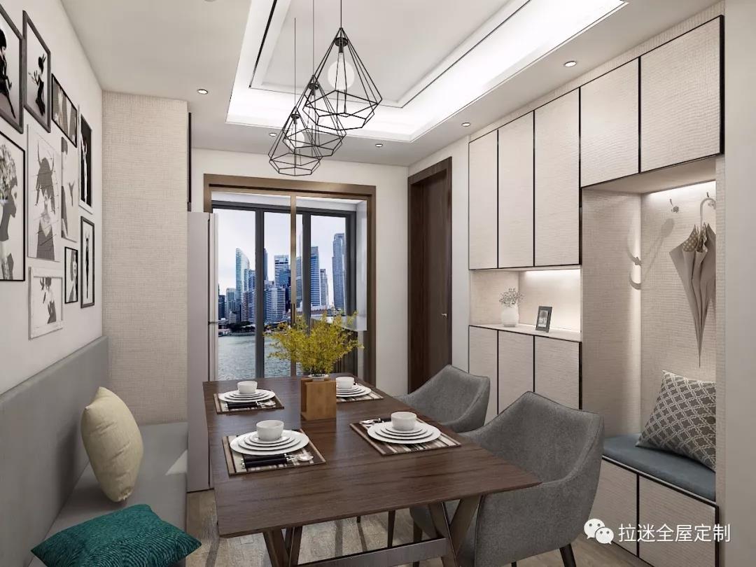 這樣的餐邊柜既可以作為隔斷使用,又具備一定的裝飾性。有收藏紅酒、茶具習(xí)慣的業(yè)主也可以在家使用適當(dāng)?shù)牟瓦吂裼脕?lái)儲(chǔ)藏和展示自己的愛好。
