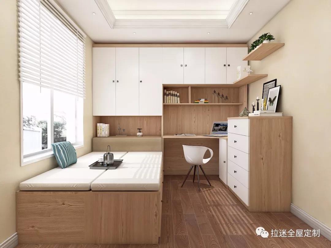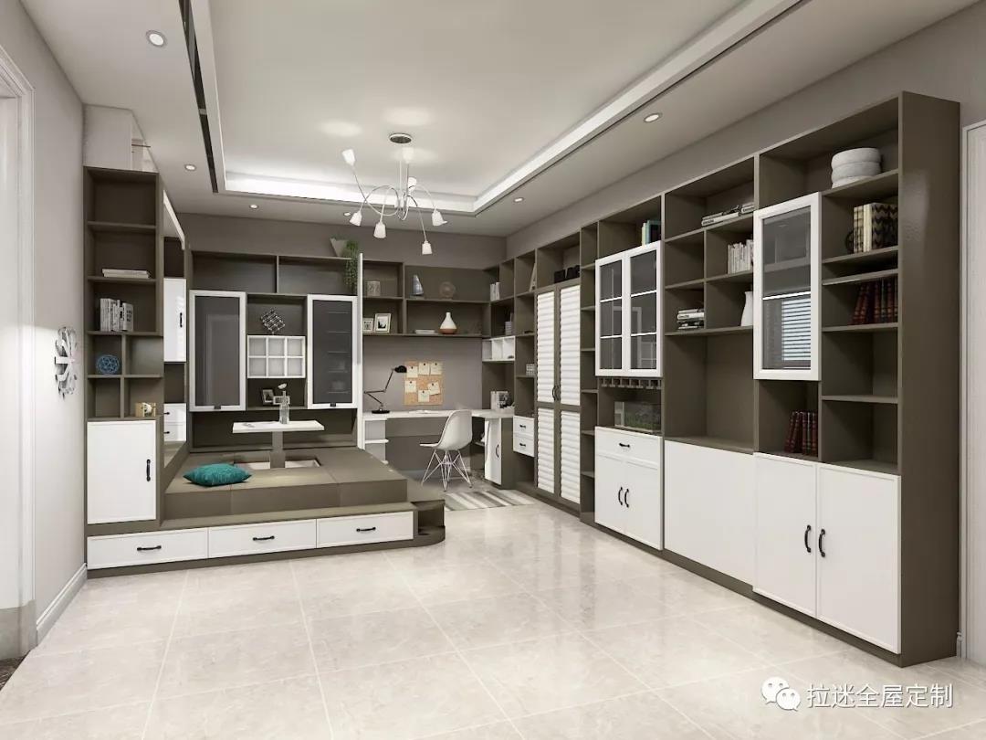 如果書房夠大的話,榻榻米會給你提供一種更加舒適的閱讀體驗。它可以承載多種功能,實現(xiàn)儲物、閱讀、會客、休息一體化。