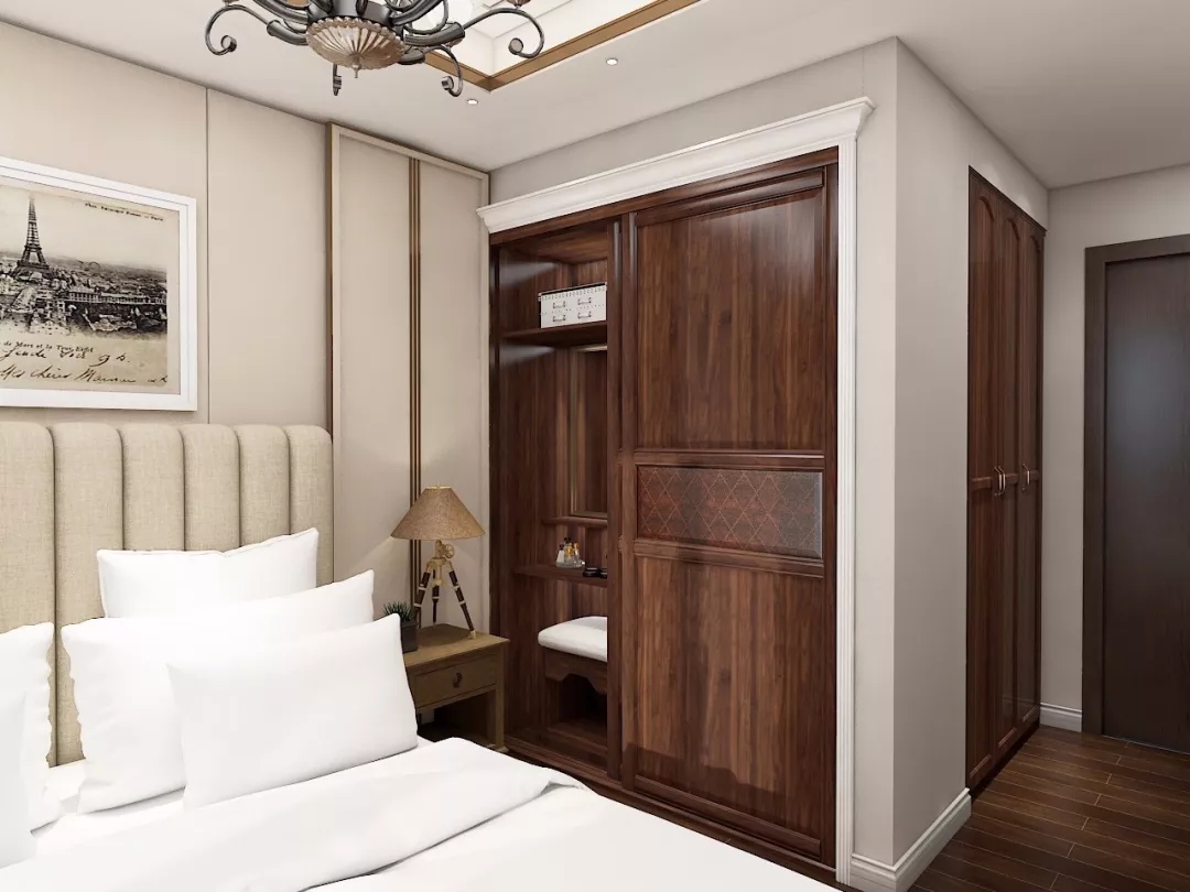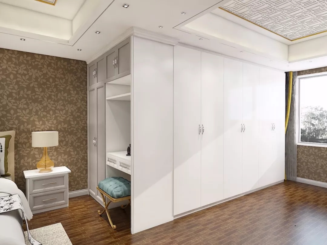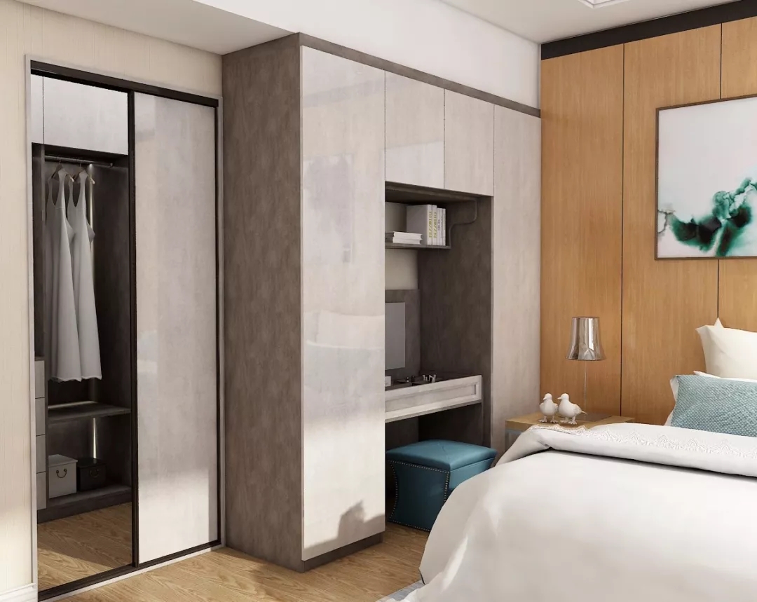 一般的臥室打開方式是:一張床、一個梳妝臺,一件衣柜。它們各自擺放在臥室的不同角落,相互之間毫無交集。但在拉迷定制衣柜這里,他們,可以融合在一起!