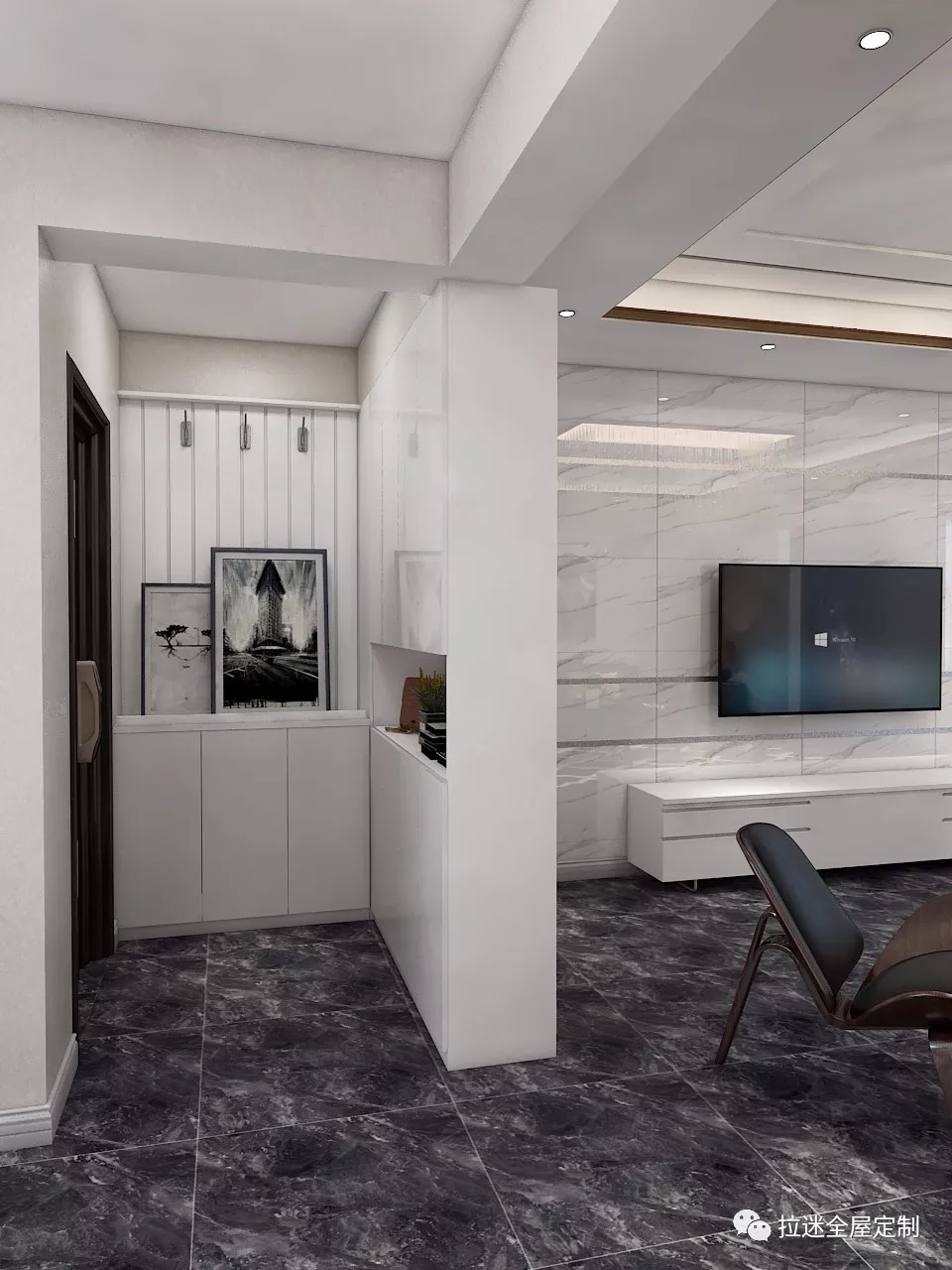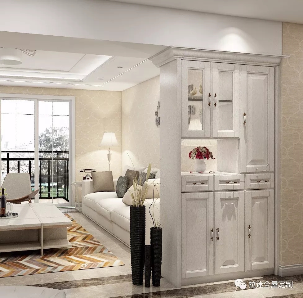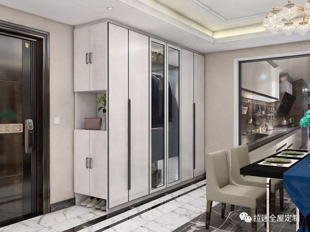 如果入門正對客餐廳,可在門前1.5m~2m處設置玄關柜,最大程度保證隱私,避免一覽無余的尷尬。