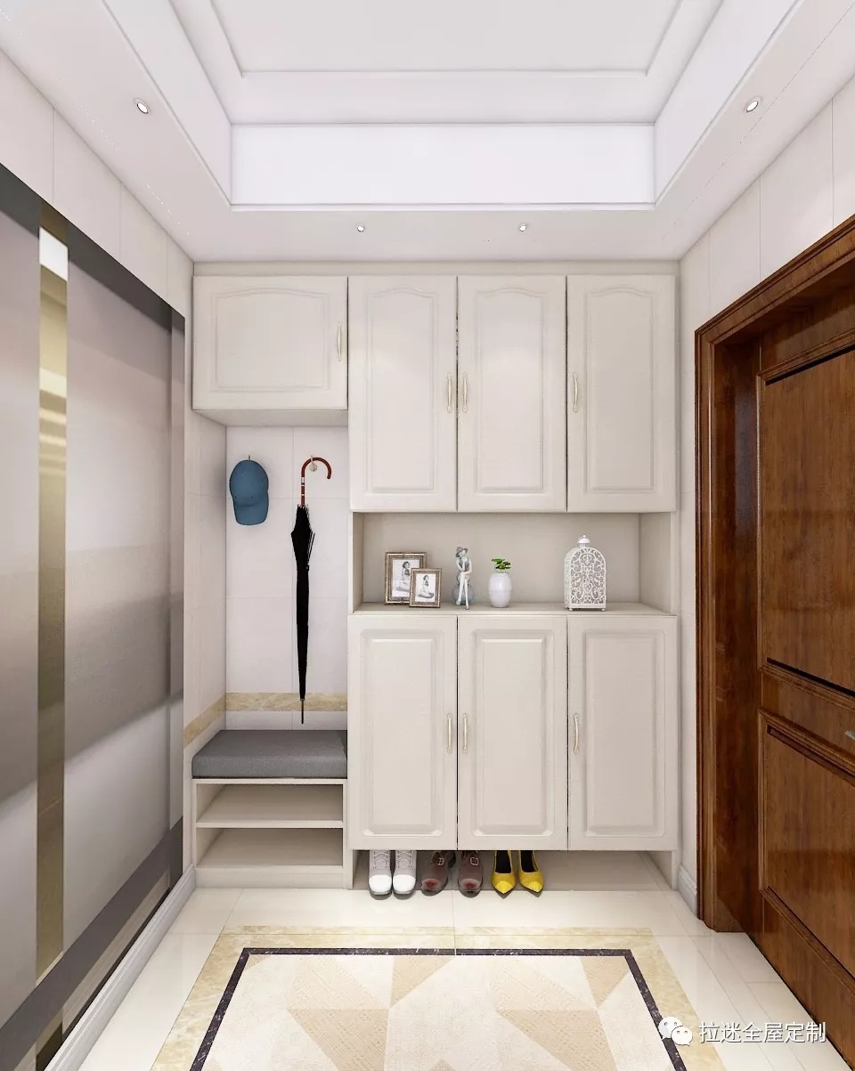 到頂嵌入式鞋柜,不僅滿足收納要求,而且非常美觀整潔。
