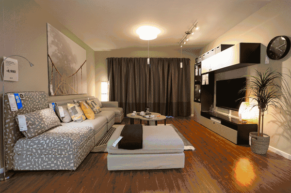 為了讓寬敞的空間看起來(lái)更加緊湊,重新安排椅子和沙發(fā)的位置,遠(yuǎn)離墻壁可以讓房間看起來(lái)更加整齊。記得留住走動(dòng)的空間。