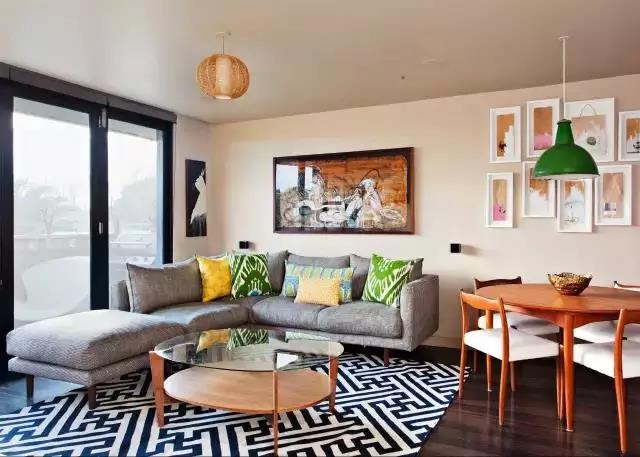 用漂亮的配件來(lái)為空間添加趣味性,著重空間的配色,可選擇同色調(diào)的物品裝點(diǎn)。亮色的靠枕裝扮了沙發(fā),漂亮的圓碗則將注意力集中到咖啡桌上。