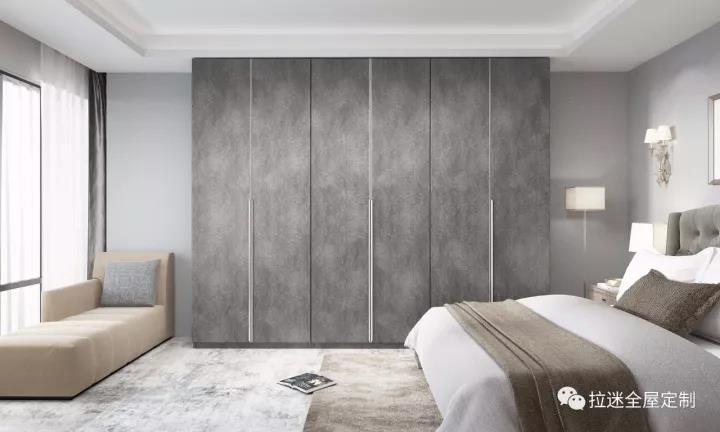 如果你的臥室空間希望風(fēng)格更加統(tǒng)一,那么衣柜、書柜等都可以統(tǒng)一定制,甚至在衣柜上融入電視背景墻的元素。