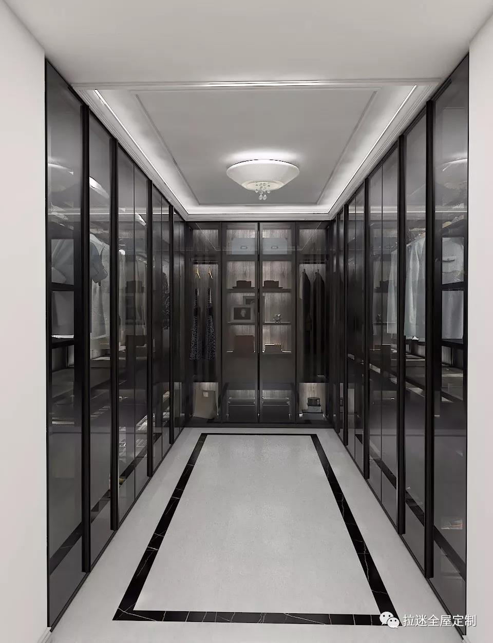 所以沉穩(wěn)時(shí)尚的黑色空間中,衣柜的各種衣物都會(huì)顯得格外整潔統(tǒng)一。