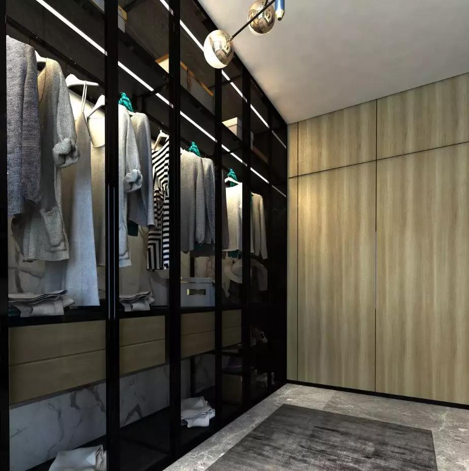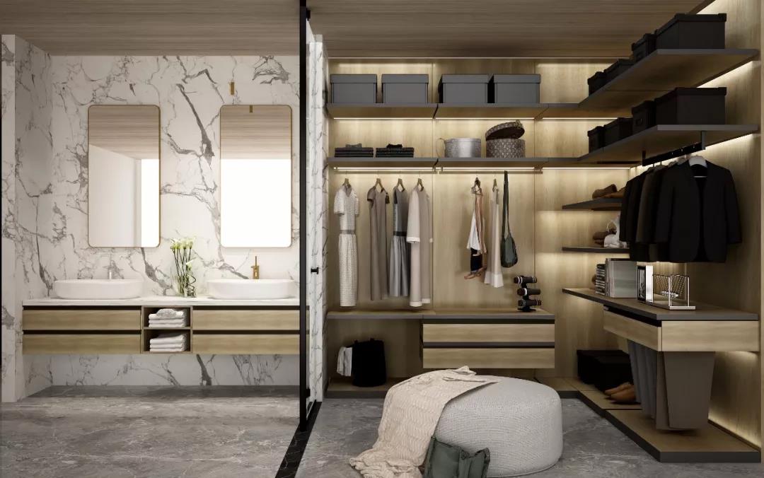 干濕分明是此衣帽最大的優(yōu)勢,衛(wèi)浴室+更衣室的設計避免了很多不必要的麻煩。全開放式衣帽間,沐浴后可快速找到需要的衣服,一覽無余,相比傳統(tǒng)封閉式衣帽間,空間利用上更加充分,功能分區(qū)上更加合理。