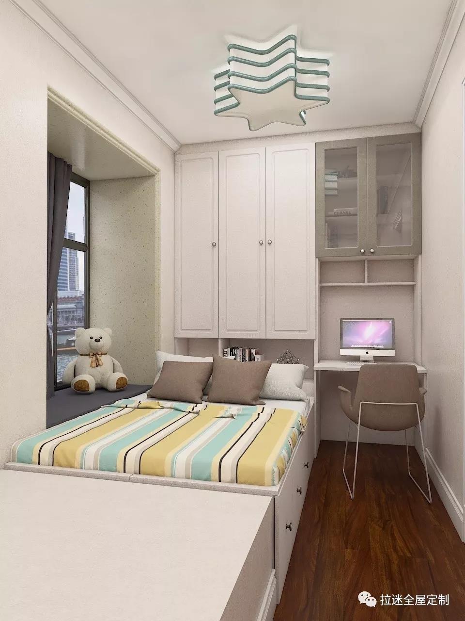 當(dāng)榻榻米遇上衣柜、書柜、飄窗柜等豐富功能柜,不到10㎡的小房間就能輸出儲物、會客、工作、娛樂、休息等諸多功能。