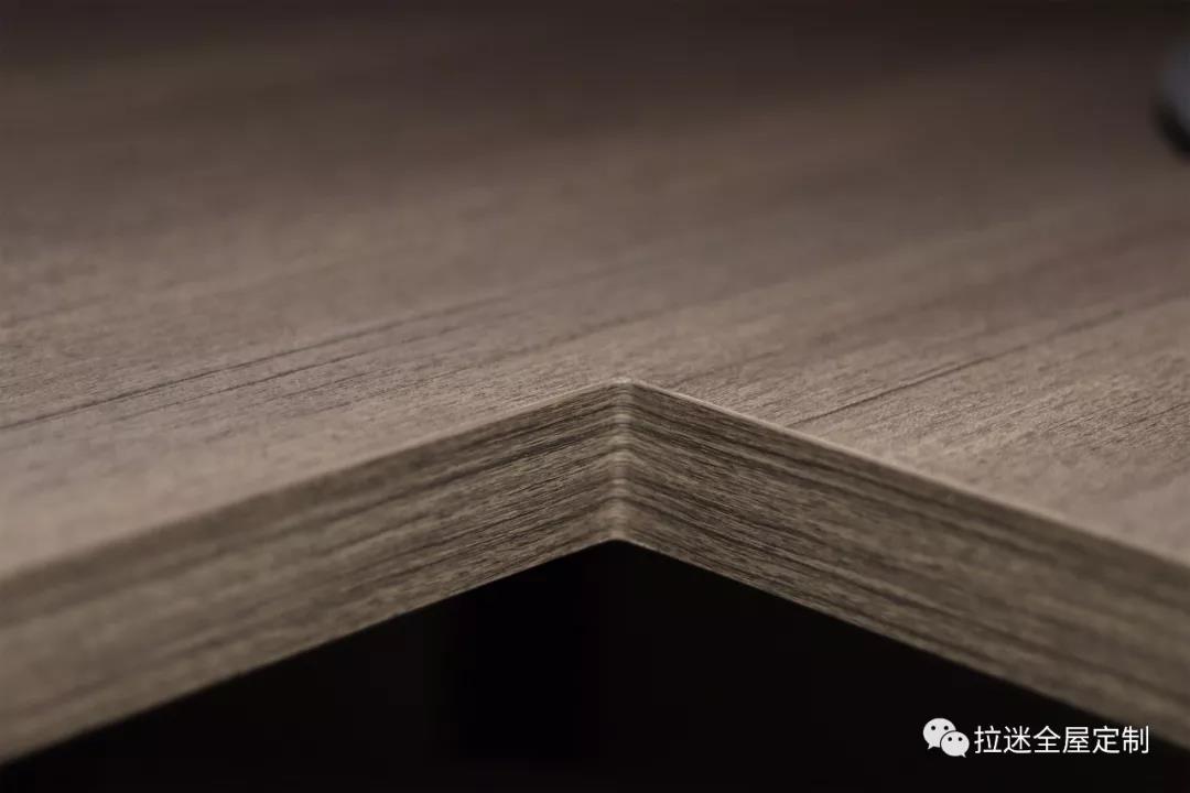 清晰自然的木紋融化了金屬邊框的冰冷。