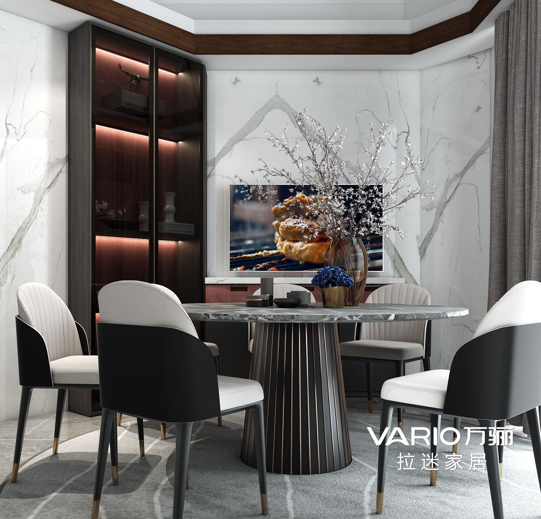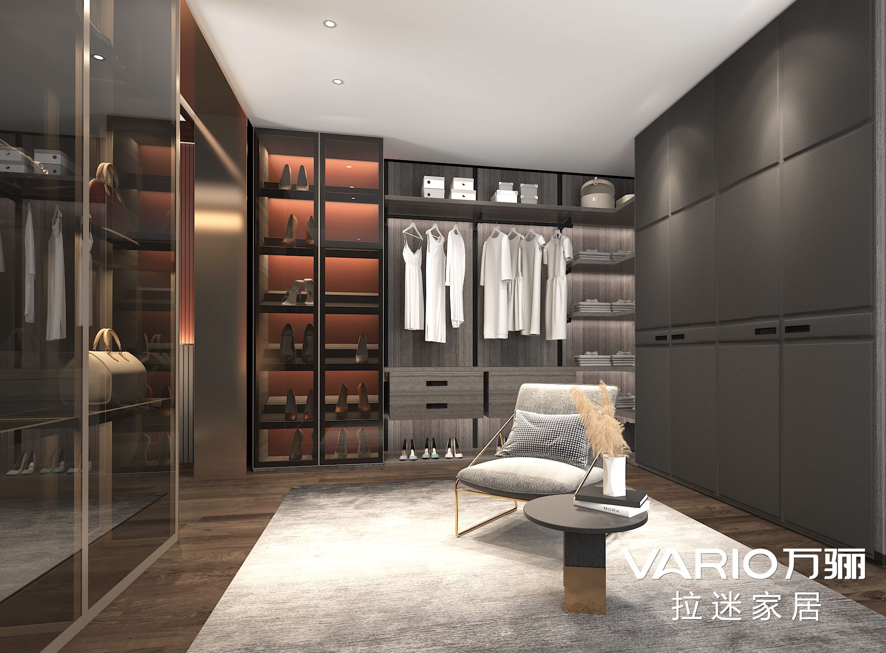玻璃材質(zhì)也能與朦朧色彩玩出百種花樣,若隱若現(xiàn)的玻璃柜門,與柜體結(jié)構(gòu)虛實(shí)相生,帶來一場(chǎng)視覺藝術(shù)盛宴。