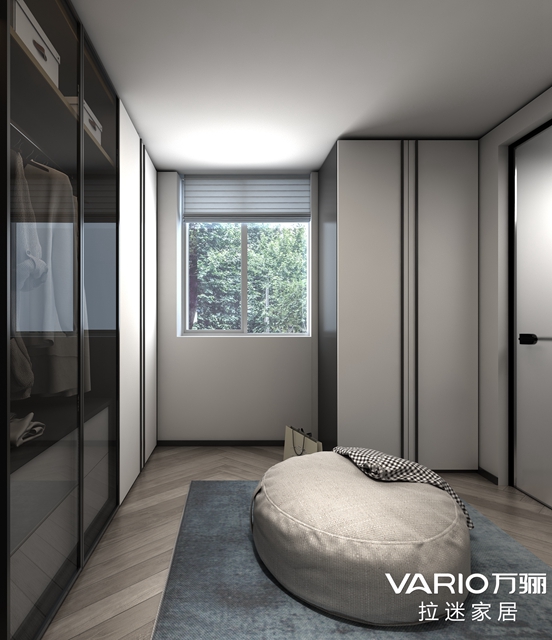 衣帽間采用實(shí)木面板和玻璃面板組合,虛實(shí)結(jié)合,空間更顯通透,魚(yú)骨拼接地板 層次分明