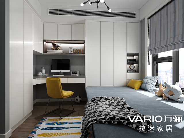 兒童房則比較活潑明亮,榻榻米是家居收納的小能手,而書(shū)桌的弧形轉(zhuǎn)角能有效防止孩子磕碰,很貼心哦!