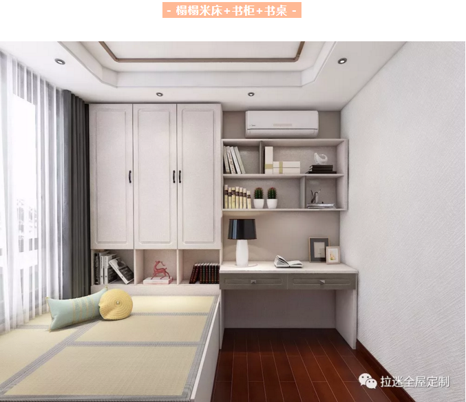 這種將【榻榻米床+衣柜+書架】結(jié)合在一起的設(shè)計(jì)方式,既能提供大量的儲(chǔ)物空間,又能創(chuàng)造個(gè)性與休閑的家居氛圍,美觀實(shí)用兩不誤!